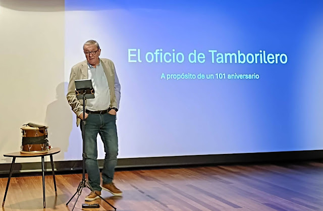 De verdad que podemos decir que fue muy bonita la conferencia de la tarde de ayer a cargo de Pedro Elosegui. Después de la presentación realizada por el también excelente txistulari Josemari Bastida "Txapi", el ponente ya nos avisó que su aportación lo sería desde una postura autocrítica y así fue. Pedro, que ha puesto en valor la antigua denominación del oficio, que no era la de txistulari sino la de "tamborilero" (la palabra txistu no aparece en los documentos del Ayuntamiento de Vitoria hasta 1906) se ha mostrado preocupado por la crisis que afecta al mundo del txistu. Nos ha contado que el txistu se asocia a la tradición, pero no debemos anclarnos en el pasado, mucho menos vivir en la añoranza de un pasado, sino crear, innovar, rejuvenecer el instrumento, creer en sus posibilidades sin límite y no olvidar su unión secular con el mundo de la danza, cuestión ésta que se ha arrinconado.