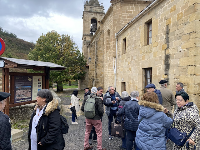 Fueron una veintena de socios y acompañantes los que acudieron, en primer lugar, a la iglesia parroquial de Santa María de Villacones, donde la arqueóloga Vanesa Martinez y Pablo Gonzalo párroco y profesor de historia contemporánea de la EHU-UPV ilustraron a los asistentes con dos lecciones magistrales.